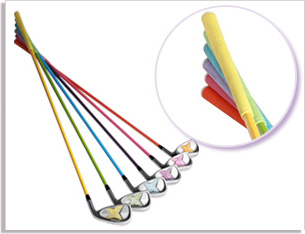 カラーは「ガーベラオレンジ」「ローズピンク」「ラベンダーパープル」「あじさいブルー」「アマリリスグリーン」「ひまわりイエロー」の6色。グリップをお好みに交換し、シャフトを塗装いたします。