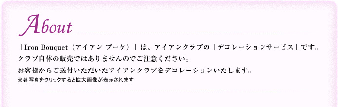 ●「Iron Bouquet(アイアン ブーケ) 」は、アイアンクラブの「デコレーションサービス」です。クラブ自体の販売ではありません。